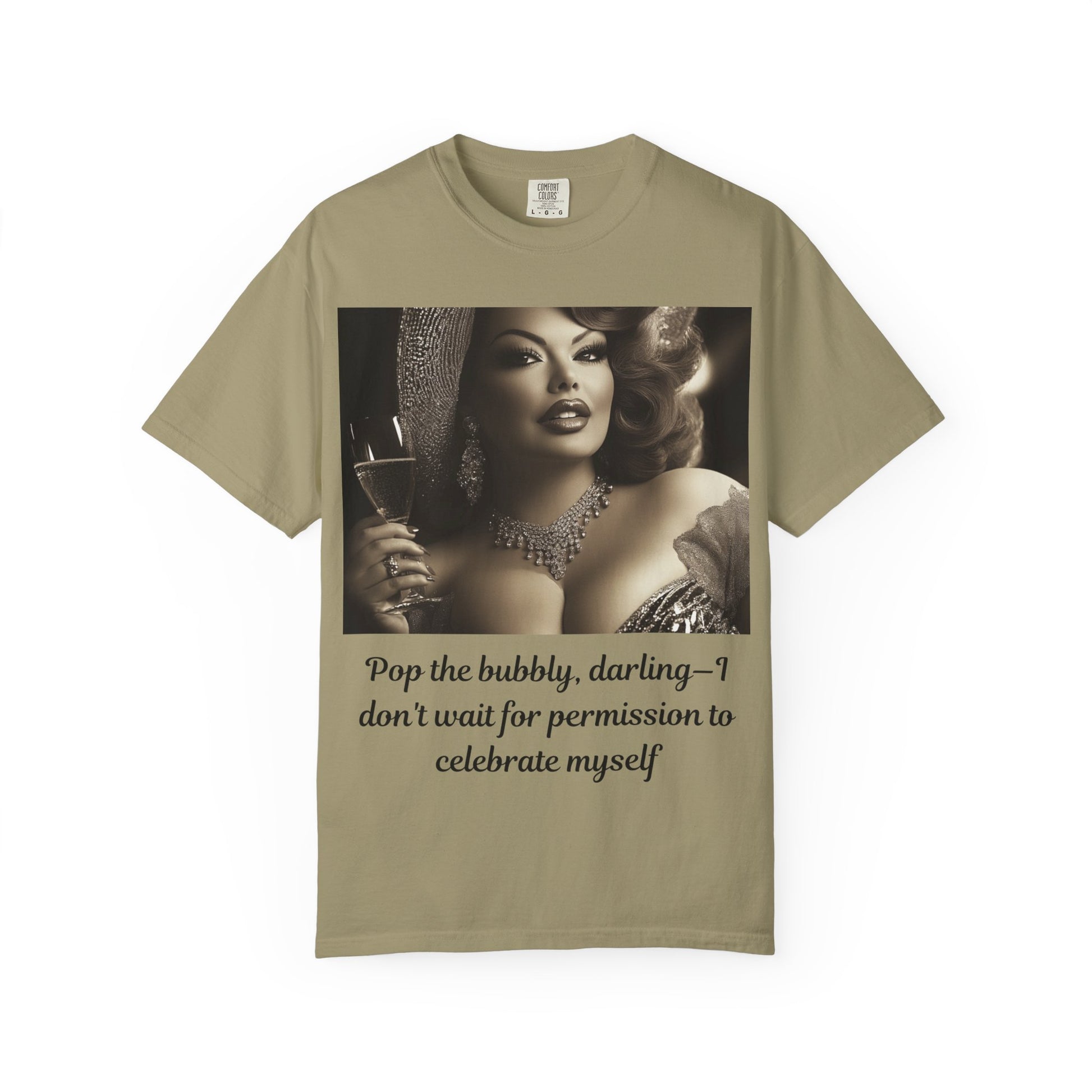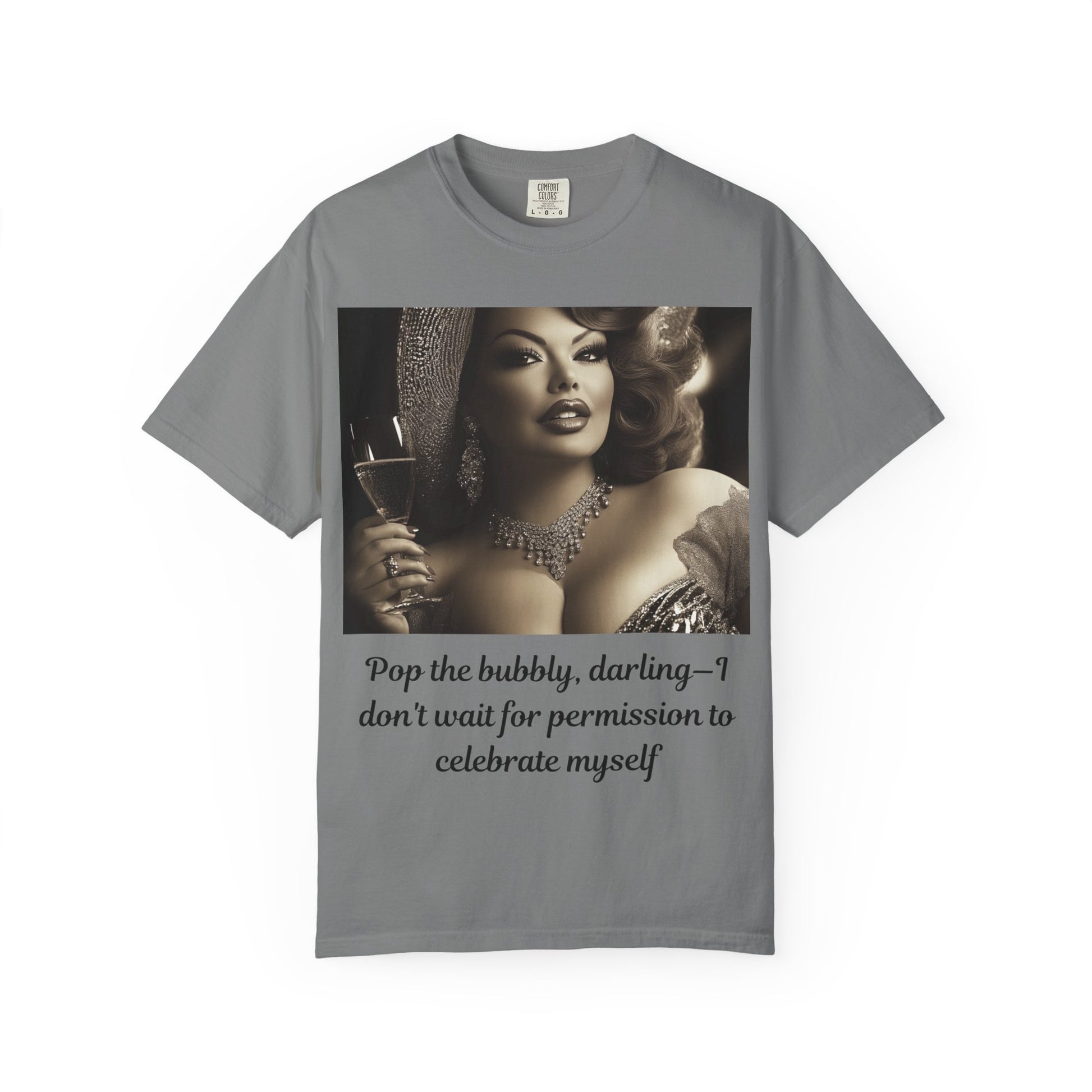 Celebrate yourself boldly every day with the Pop the Bubbly Tee. Made from premium garment-dyed 100% ring-spun cotton, this tee offers a soft, flattering fit that’s ready for brunches, birthdays, or any moment you choose to shine.