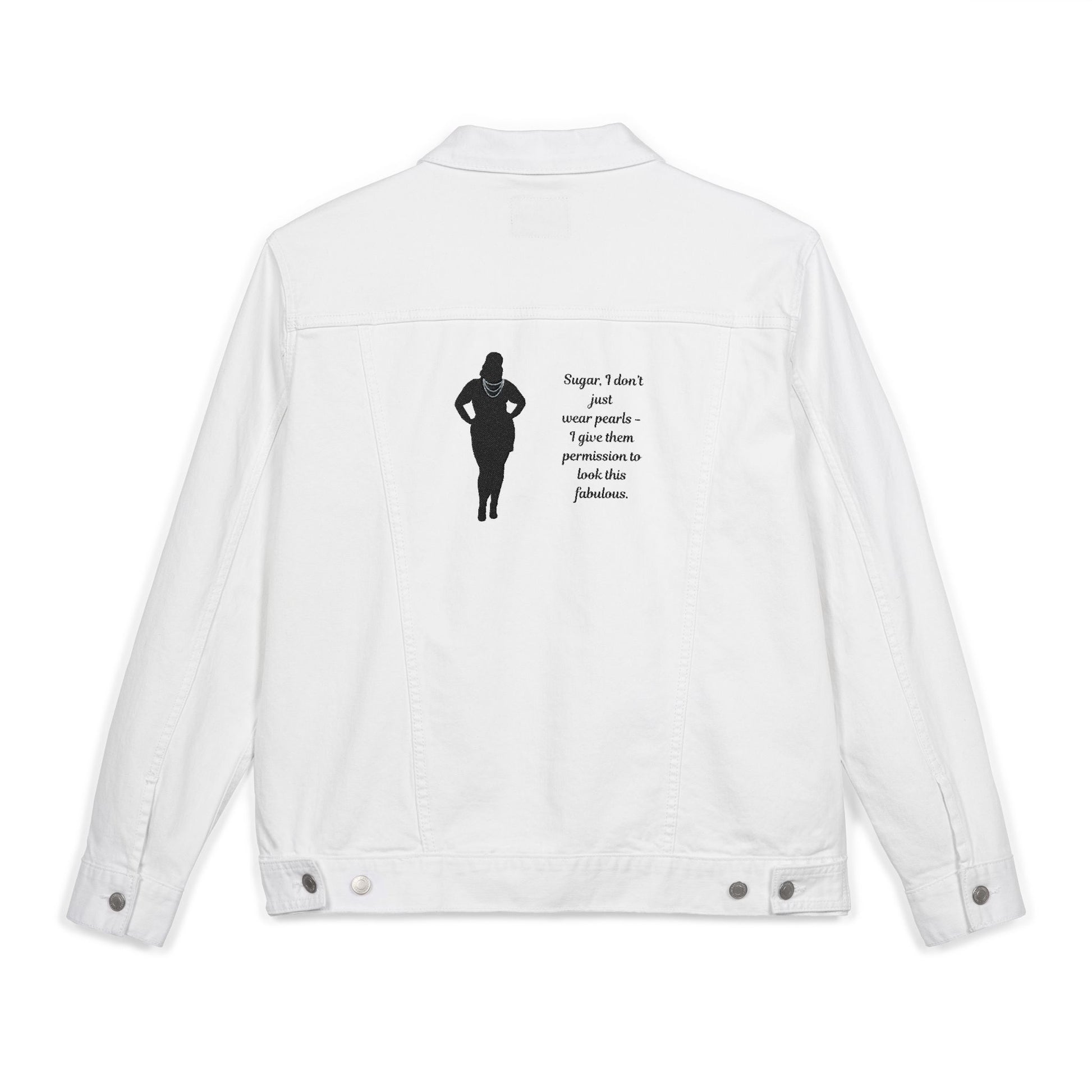 FAT-GIRL “Pearls of Power” Embroidered Denim Jacket