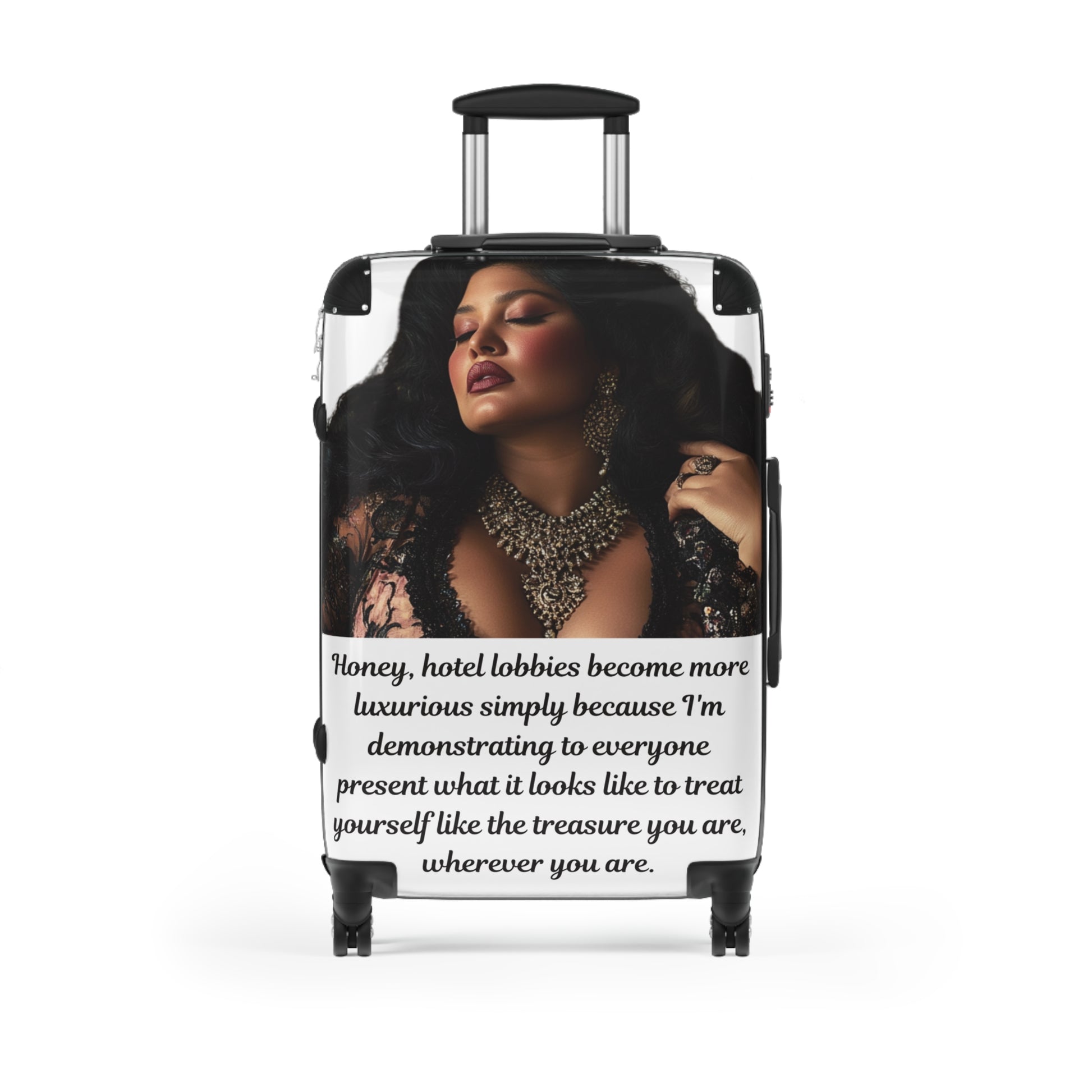 Luxury starts the moment you arrive. The “Treasure in Transit” Luggage is designed for women who don’t just travel—they make an entrance. Crafted to blend bold style with practical elegance, this set is your rolling red carpet from airport to hotel lounge. Carry your value, vision, and undeniable glow wherever you go.